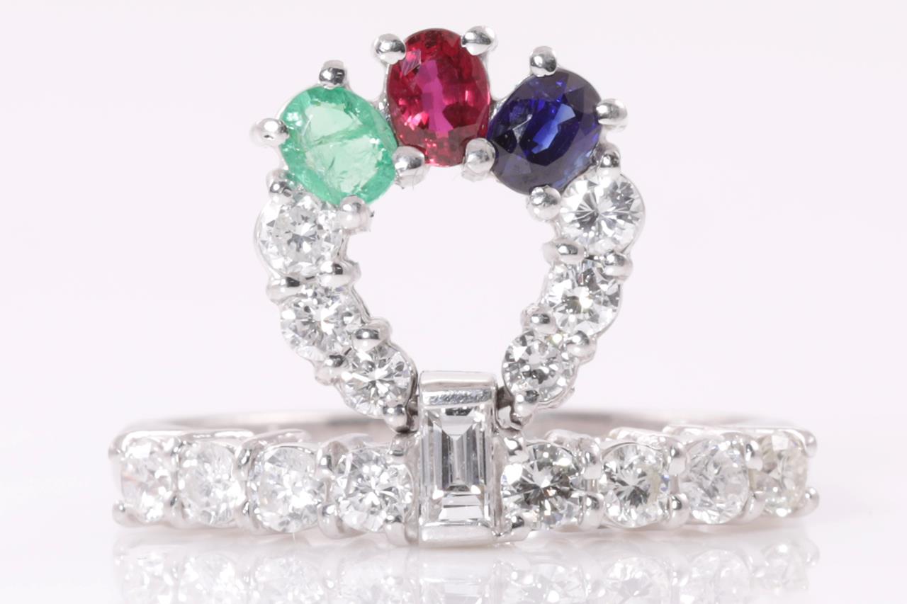 Multi-coloured Gemstones and Diamond Ring