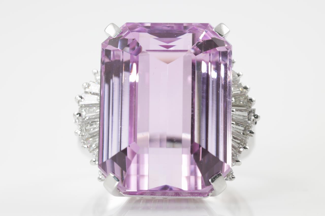 34.40ct Kunzite and Diamond Ring