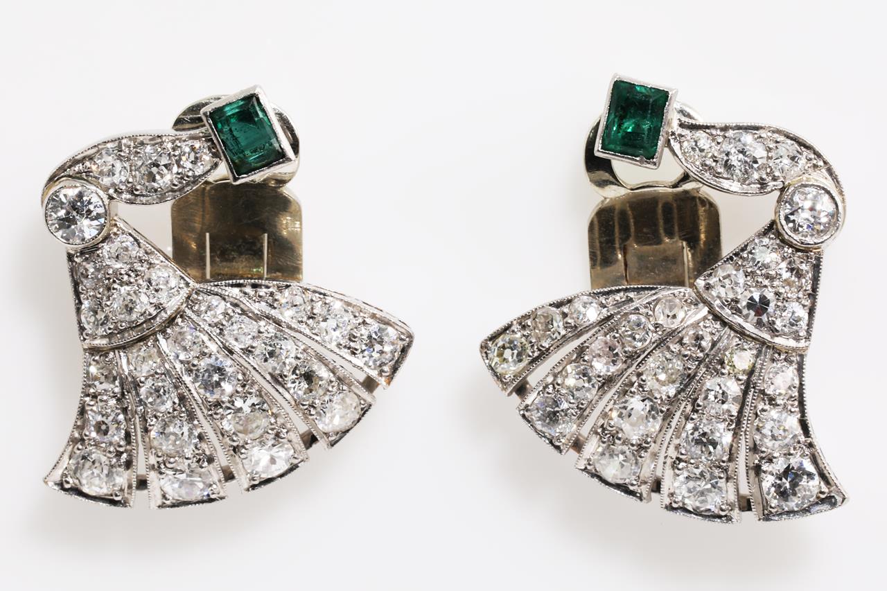 Art Deco Emerald and Diamond Earrings