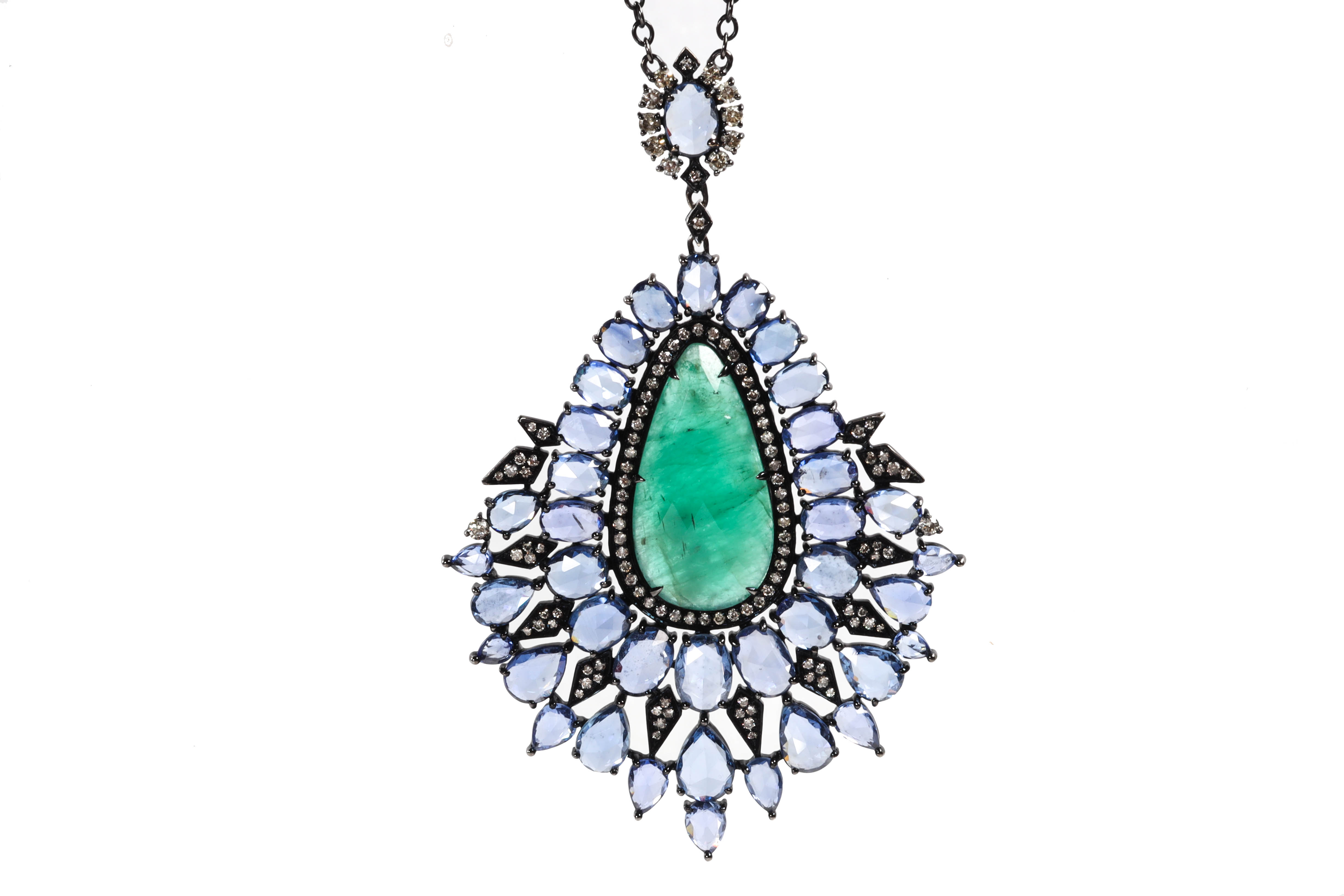 8.37ct Emerald, Sapphire and Diamond Necklace