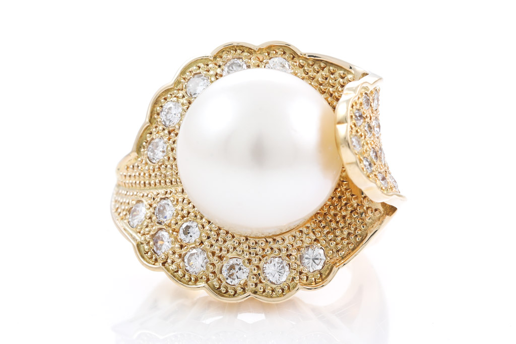 13.6mm South Sea Pearl and Diamond Ring
