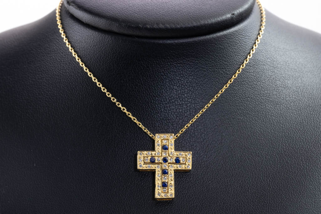 Blue Sapphire and Diamond Cross Pendant