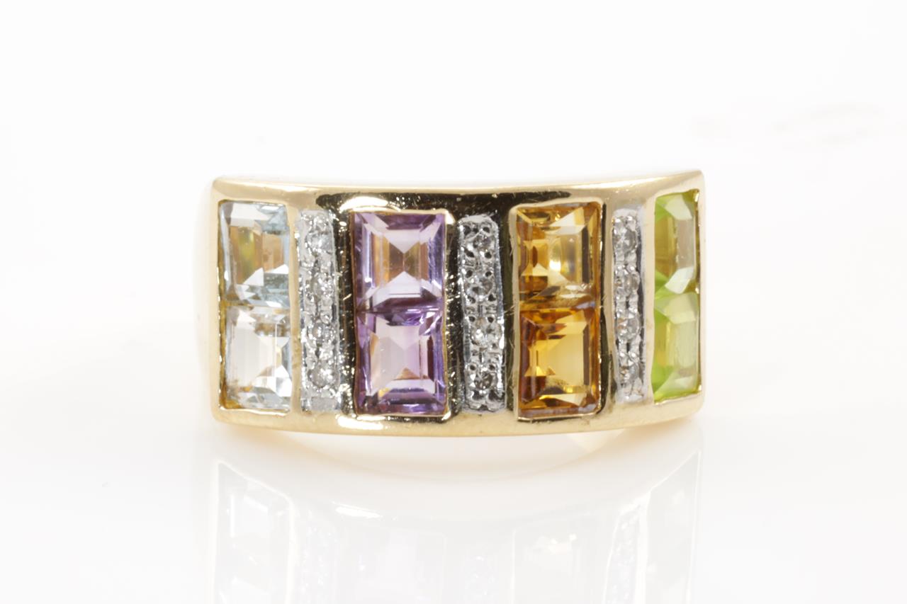 Mixed Gemstone and Diamond Ring