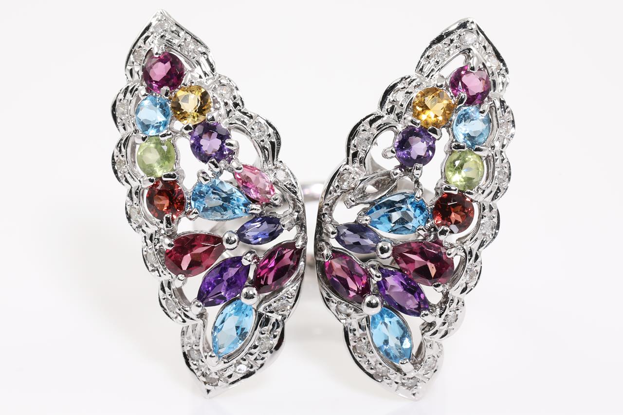 Mixed Gemstone and Diamond Butterfly Ring