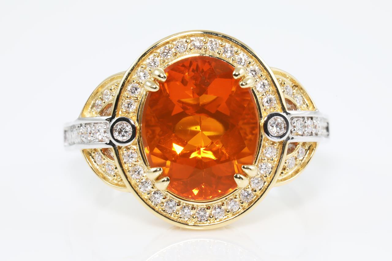 5.28ct Fire Opal and Diamond Ring