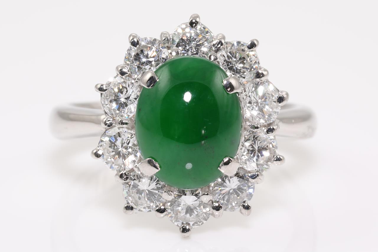 2.22ct Natural Jade and Diamond Ring