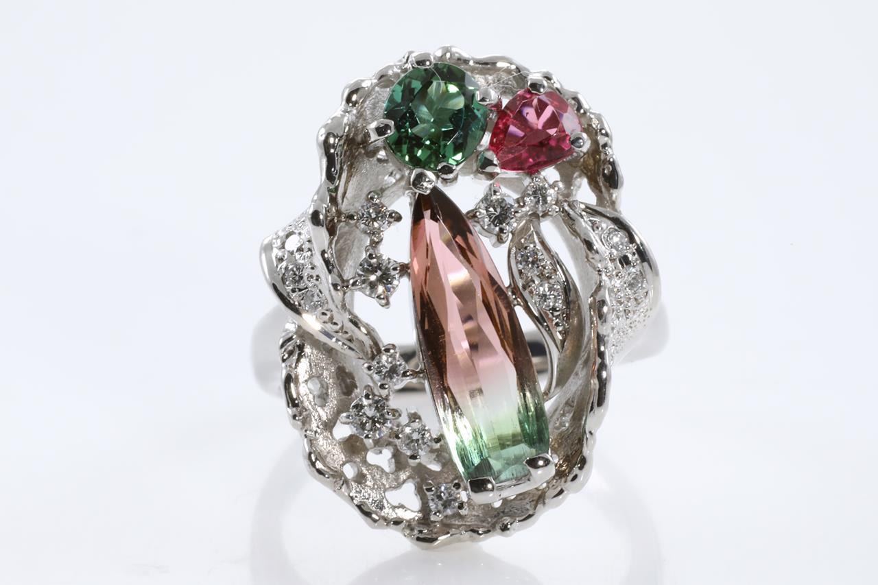 Watermelon Tourmaline and Diamond Ring