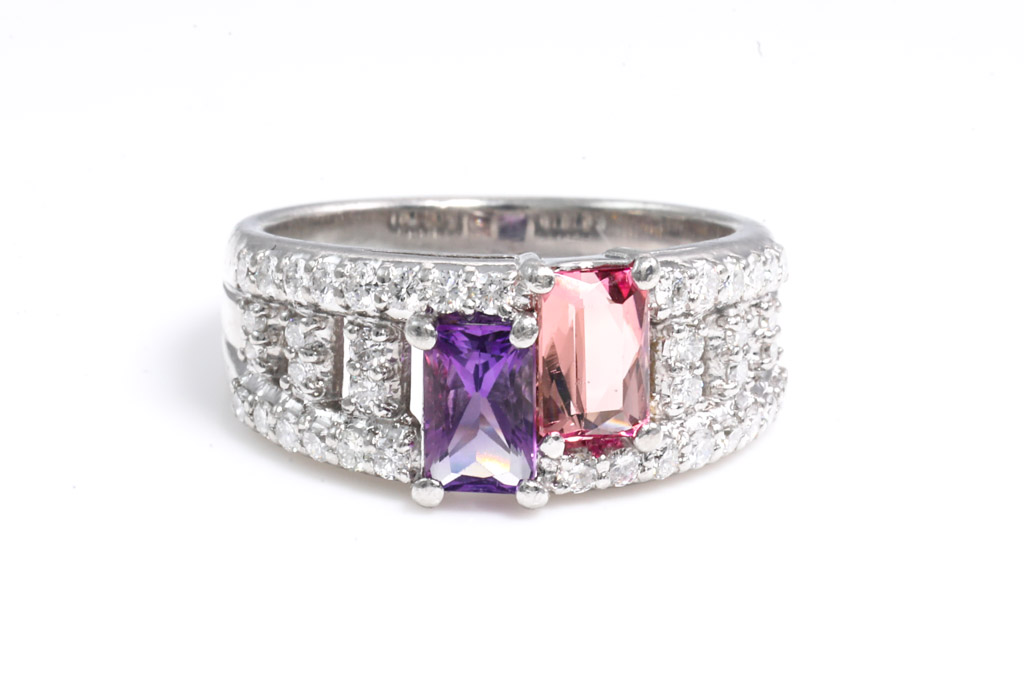 Tourmaline, Amethyst and Diamond Ring