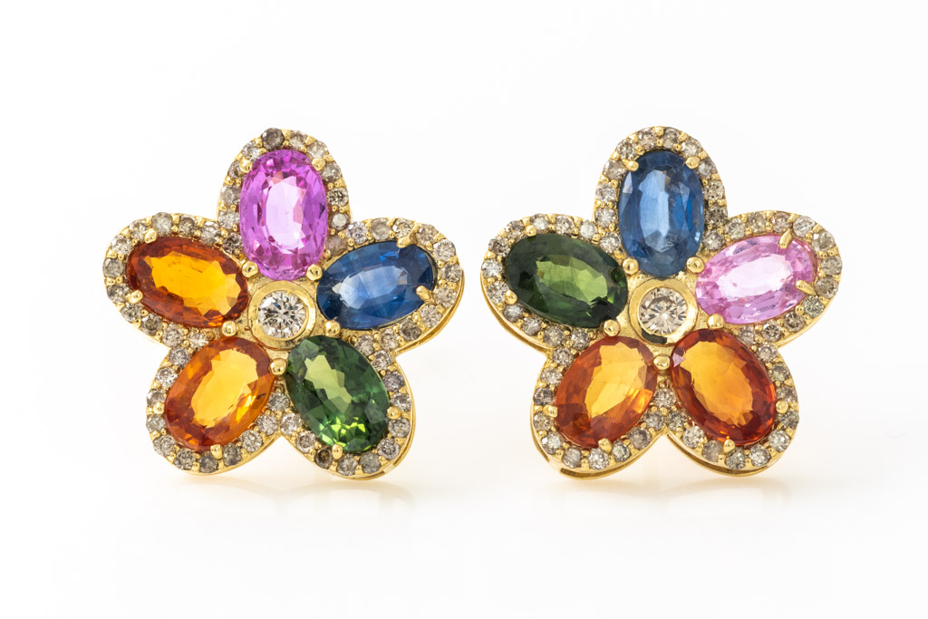 6.00ct Multi-coloured Sapphire and Diamond Earrings