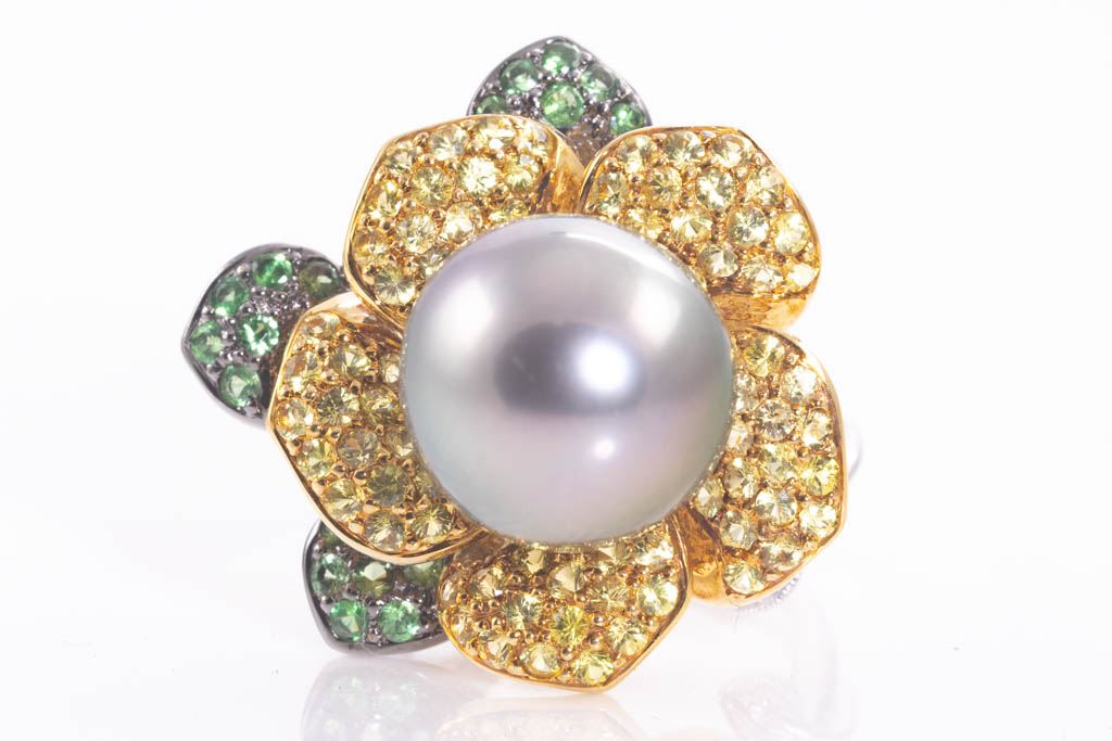 12.5mm Tahitian Pearl, Sapphire & Diamond Ring