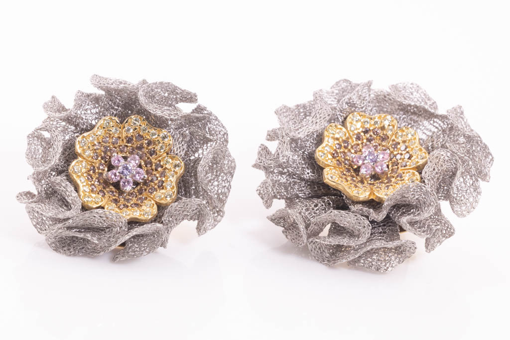Tourmaline & Topaz, 18ct Mesh Link Earrings