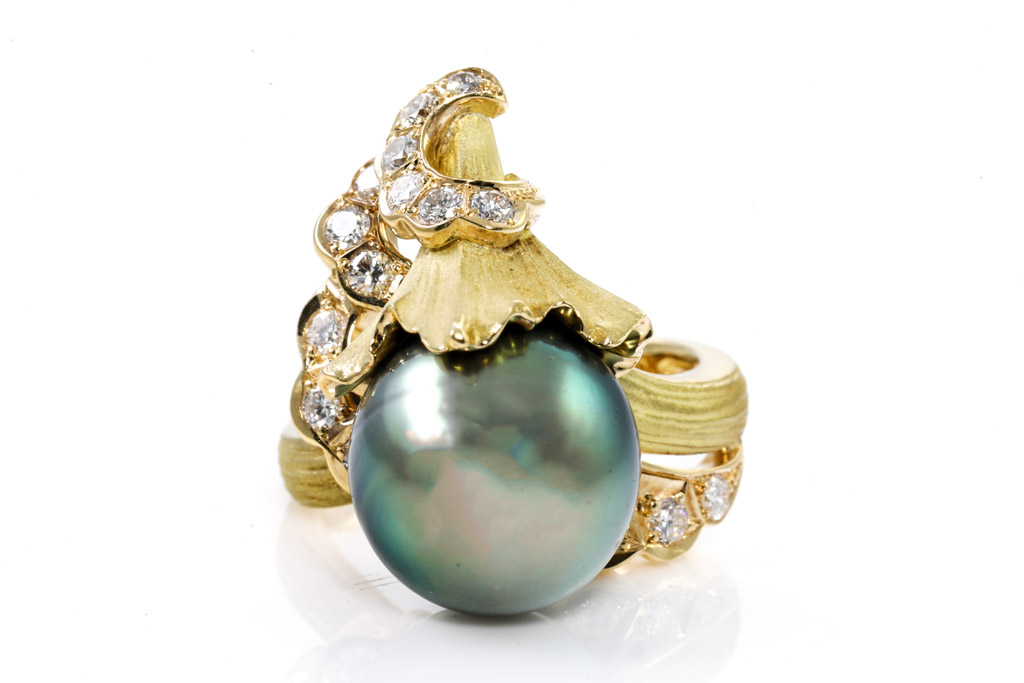 12mm Tahitian Pearl and Diamond Ring