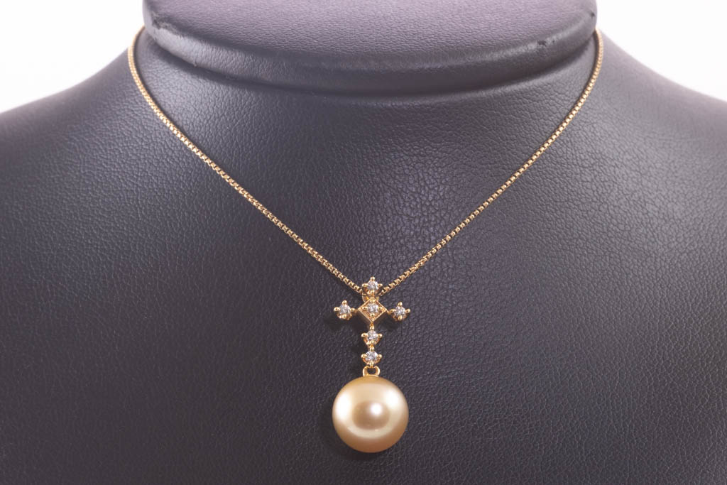 10.3mm Golden Pearl and Diamond Pendant