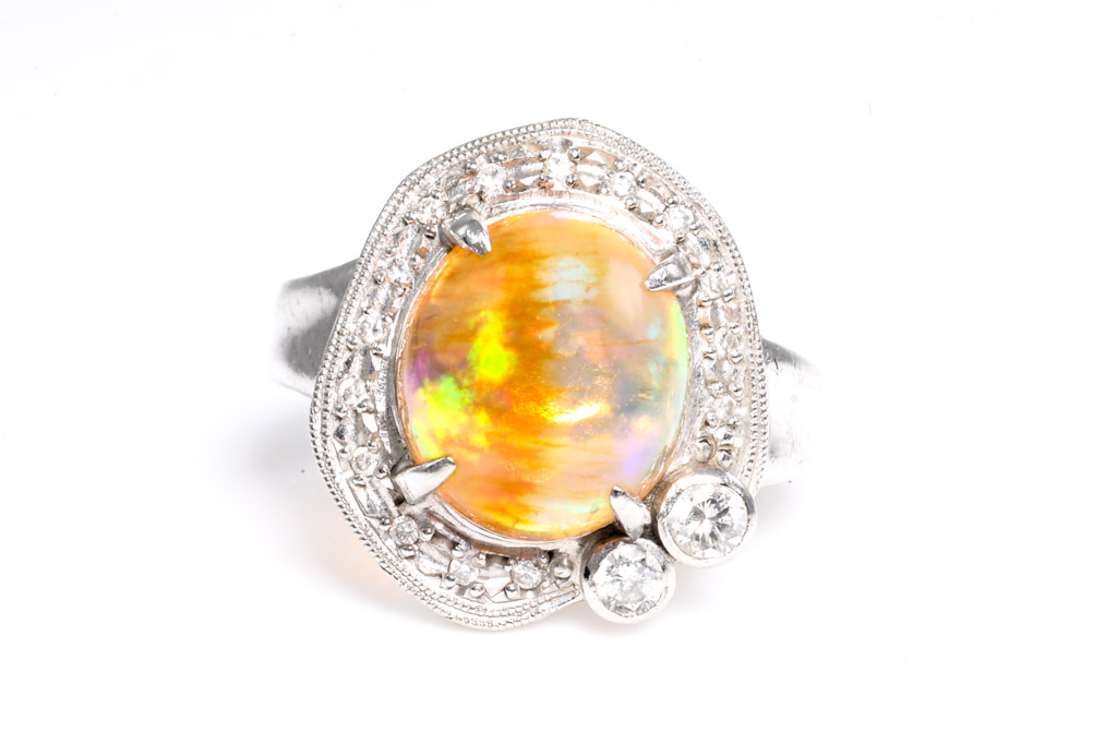 5.95ct Fire Opal and Diamond Ring
