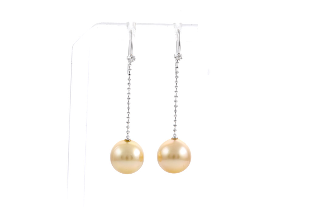 11.2mm Golden Pearl and Diamond Earrings