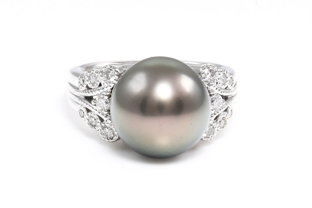 12.1mm Tahitian Pearl and Diamond Ring