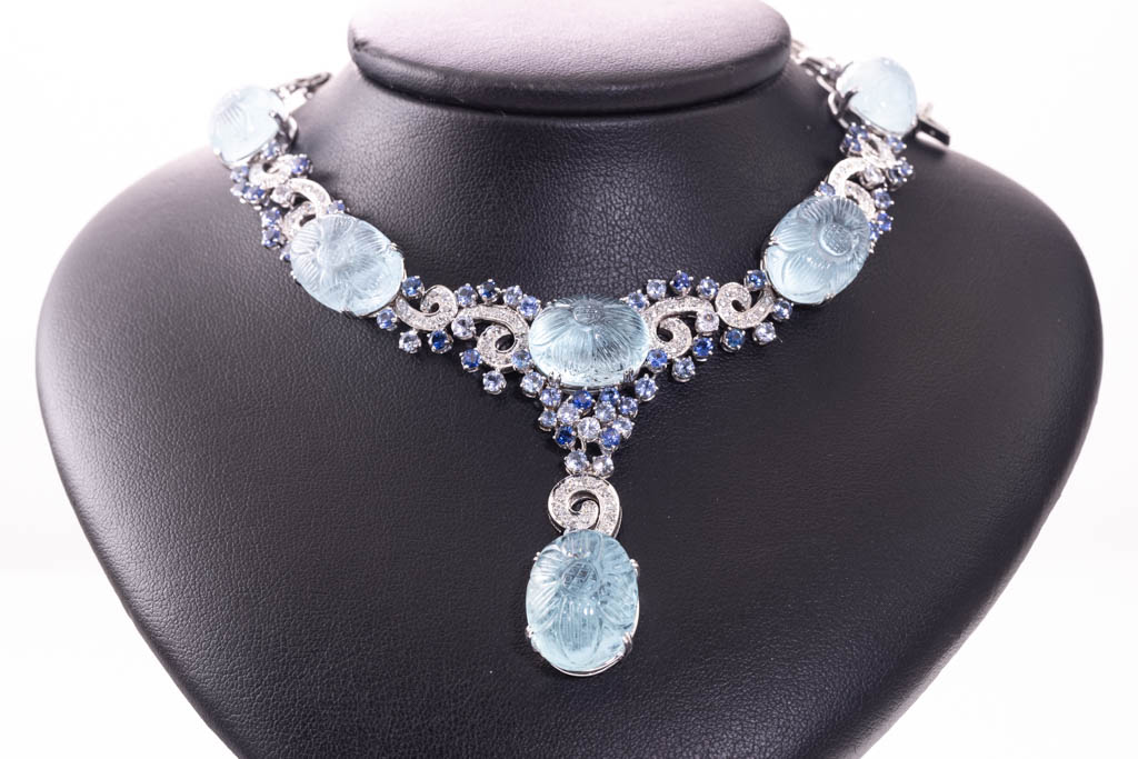 Aquamarine, Sapphire & Diamond Necklace