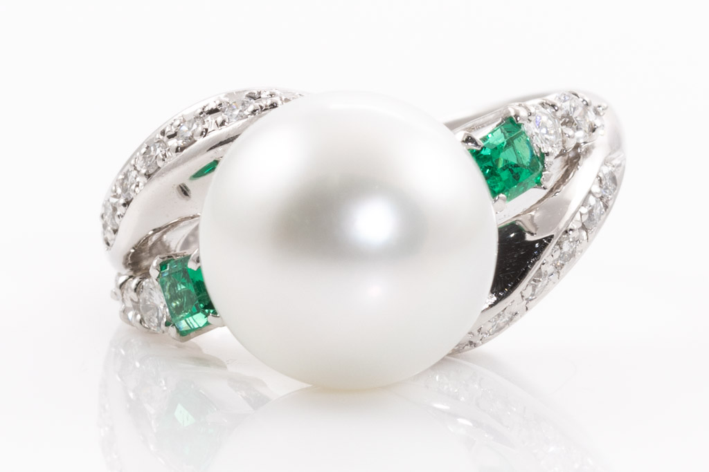 12mm Pearl, Emerald and Diamond Ring