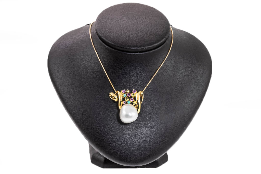 Mixed Gemstones and Pearl Pendant