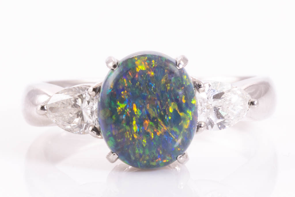 1.98ct Black Opal and Diamond Ring