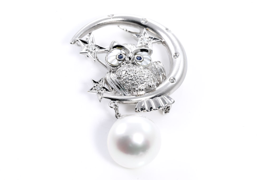 13.2mm Pearl, Sapphire and Diamond Brooch