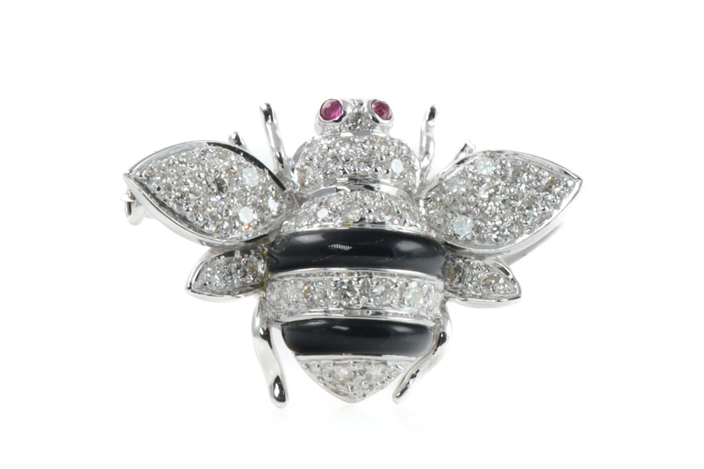0.76ct Diamond & Ruby Honey Bee Brooch