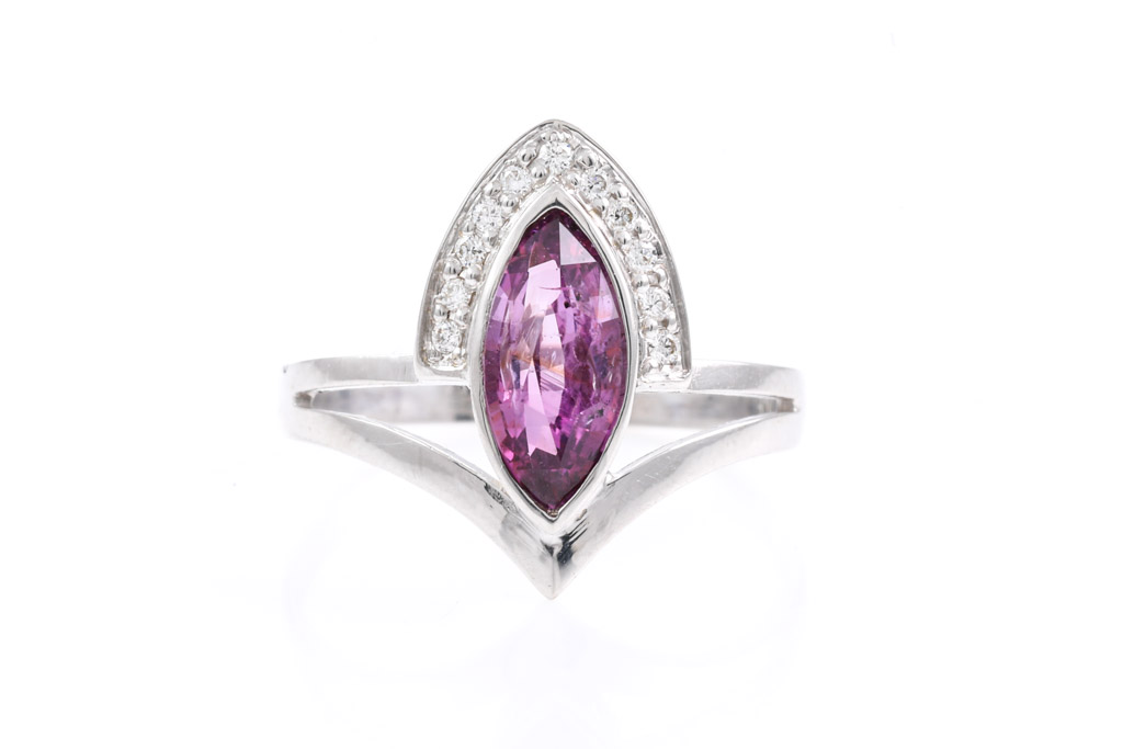 Pink and Colourless Diamond Ring