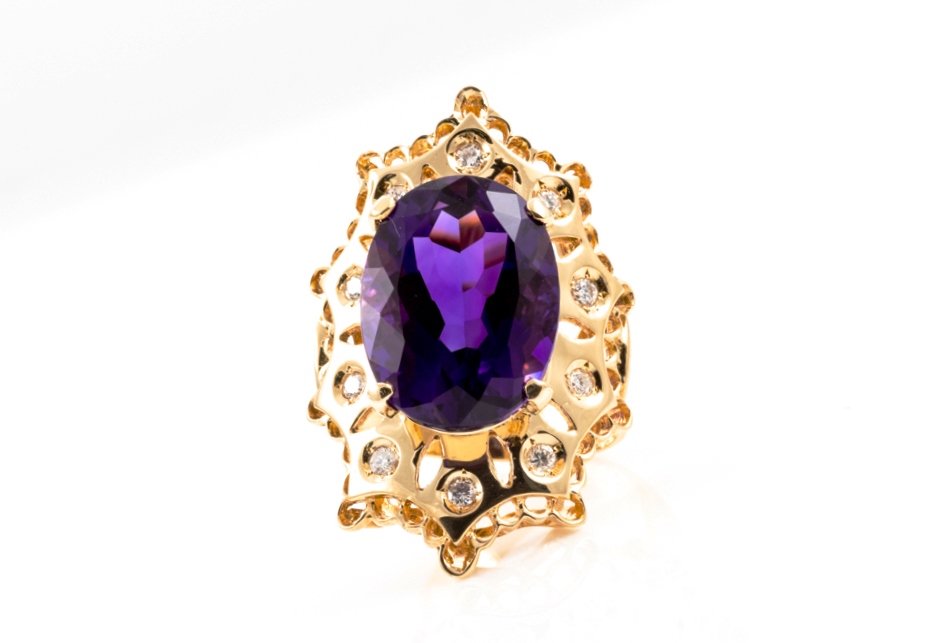 7.85ct Amethyst and Diamond Ring