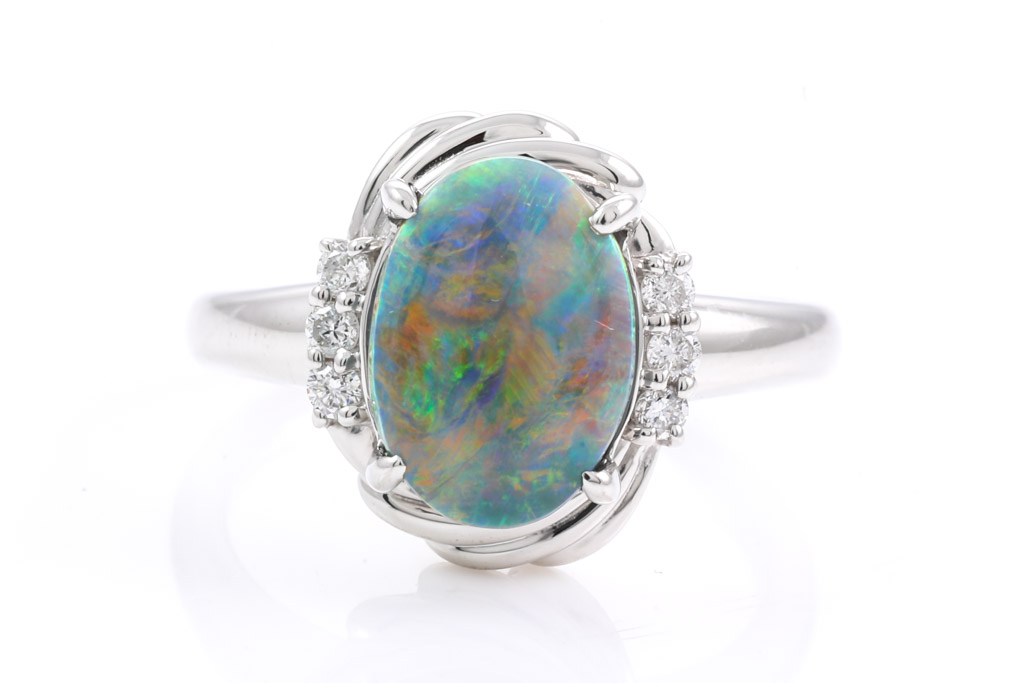 2.60ct Solid Black Opal and Diamond Ring