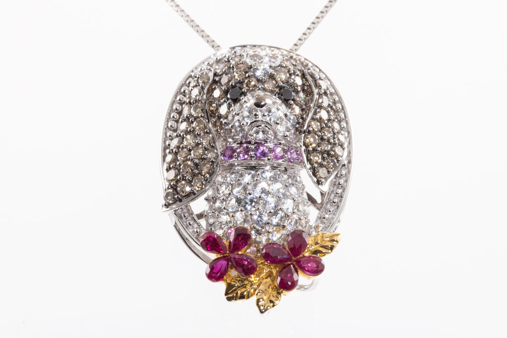 Diamond and Sapphire Puppy Designed Pendant