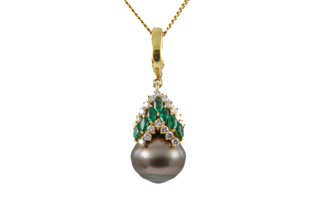 15.3mm Tahitian Pearl, Emerald and Diamond Pendant
