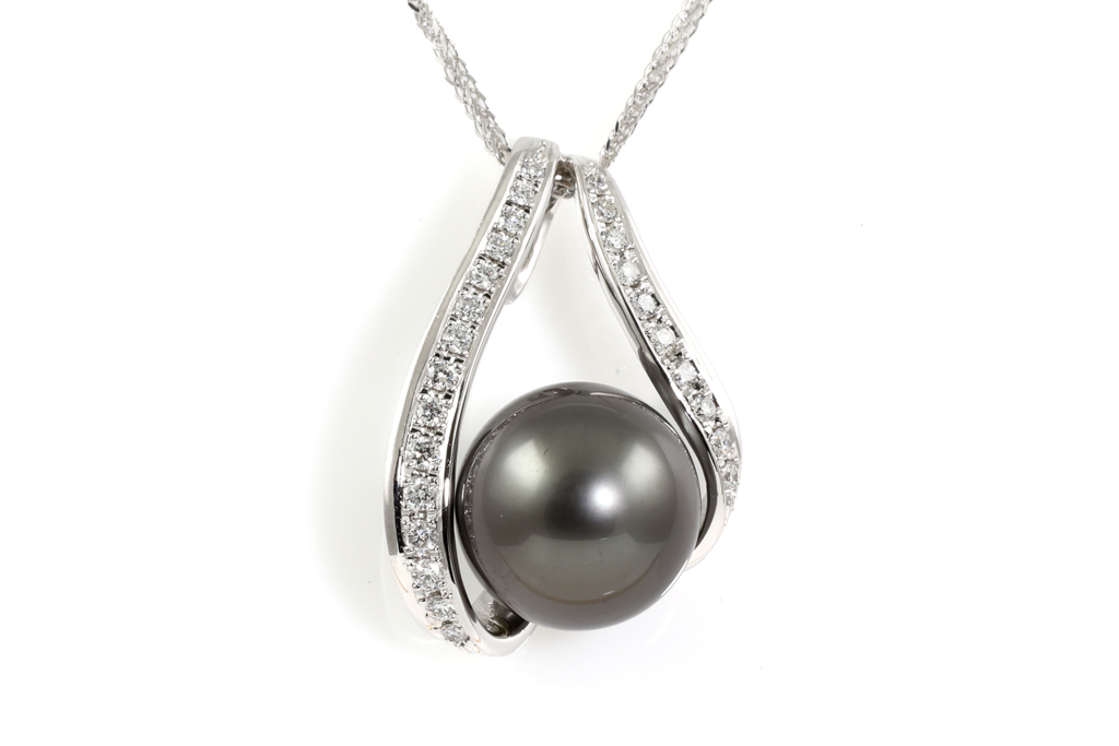 13.5mm Tahitian and Diamond Pendant