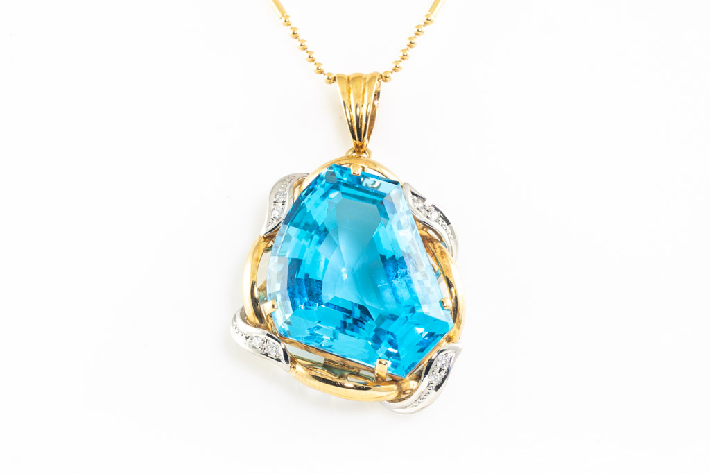 58.76ct Blue Topaz and Diamond Pendant
