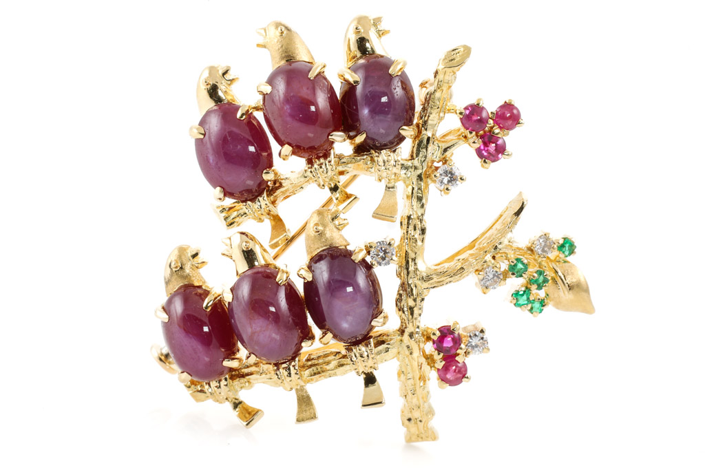 12.88ct Star Ruby and Diamond Brooch