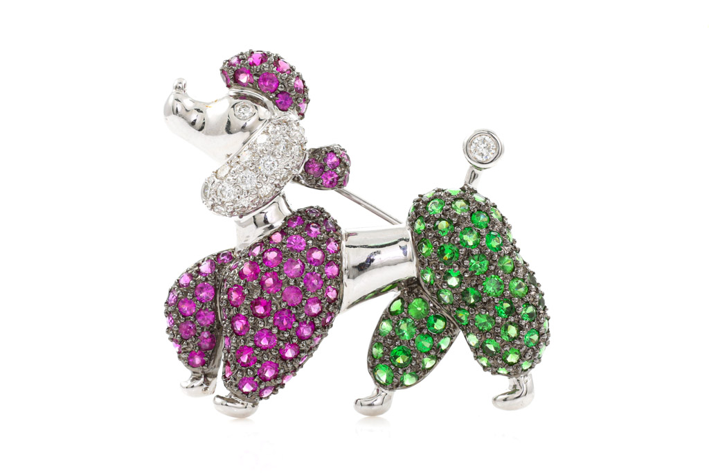 Poodle Brooch with Diamonds & Gemstones