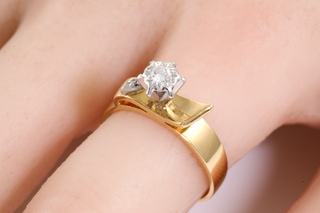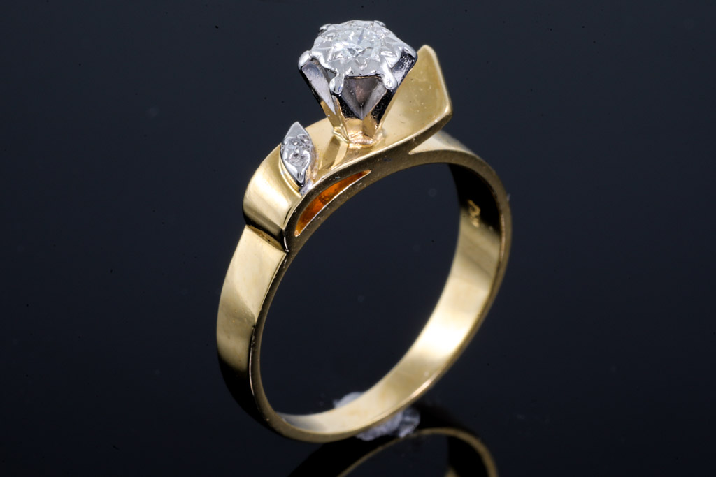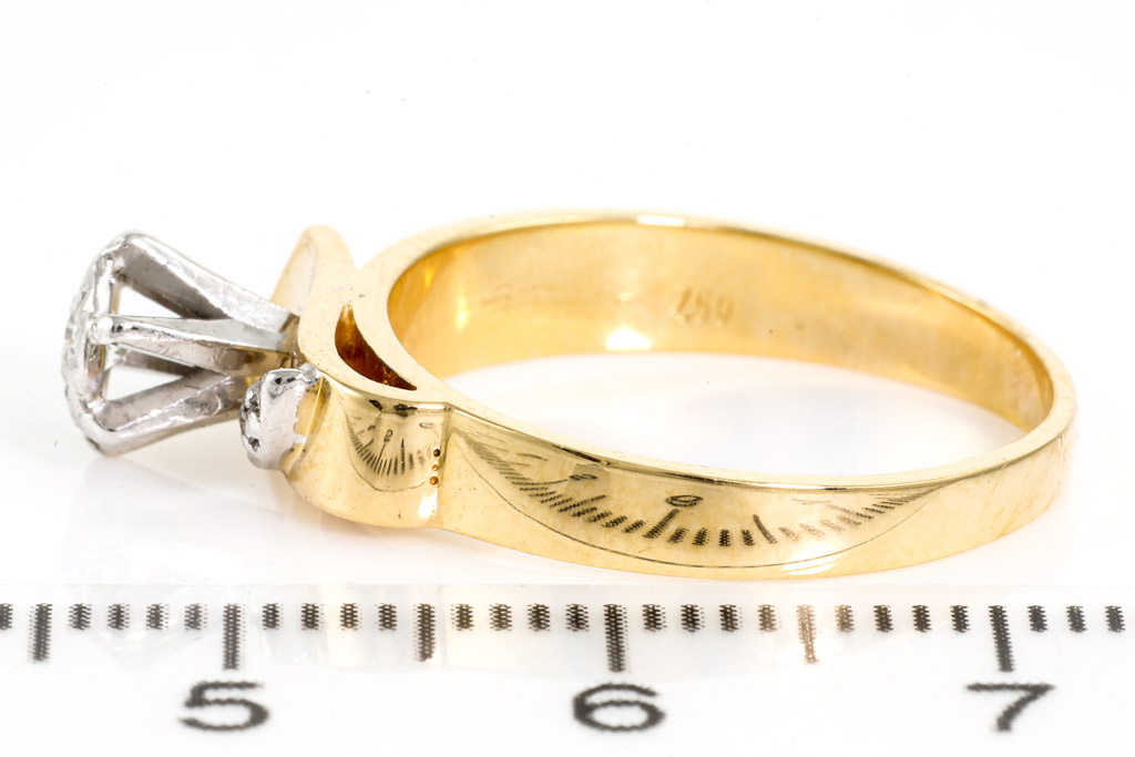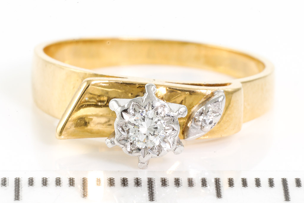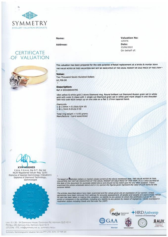 Diamond ring with round Diamonds totalling 0.11cts. 18ct yellow and white gold. Ring size N1/2. Weight: 4.4g. With Valuation Certificate Ref# 033100044795. (Pre-owned)
