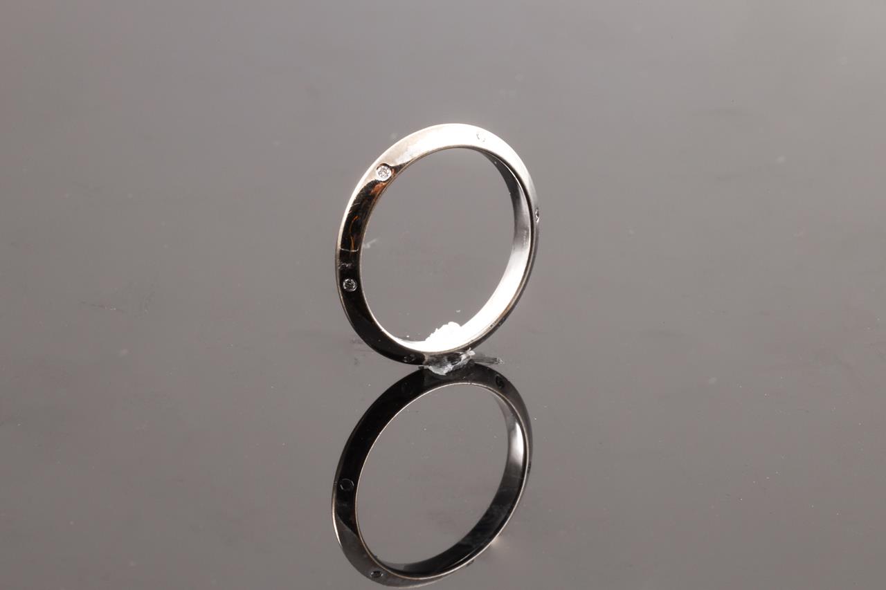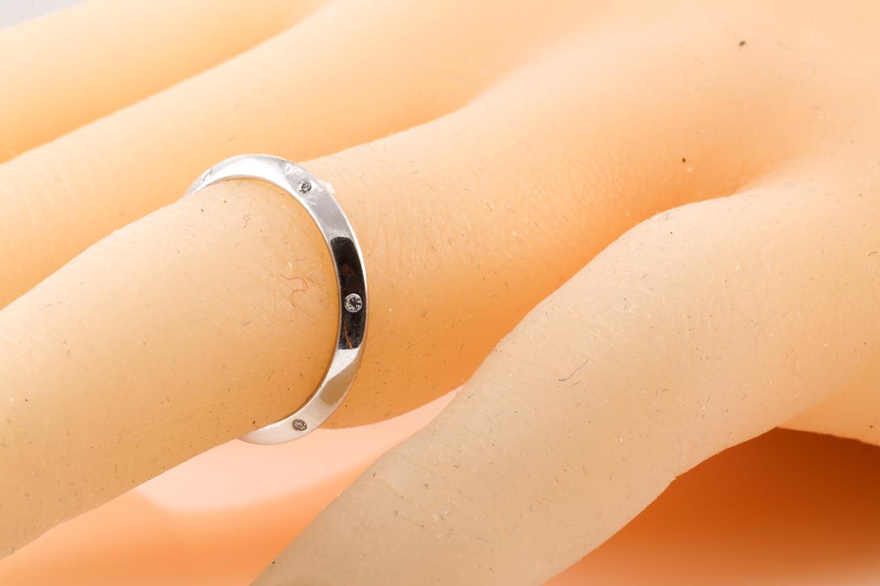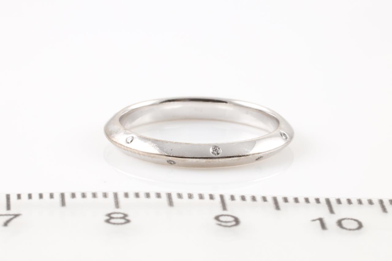 Diamond knife edge ring with 12 Diamond totalling 0.12cts. 18ct white gold. Ring size I1/2 - ring resizing is not recommended. Weight: 2.4g. (Pre-owned)