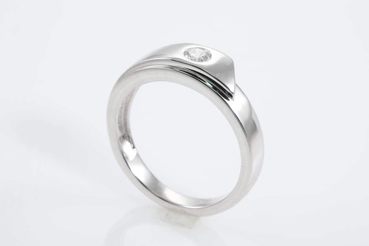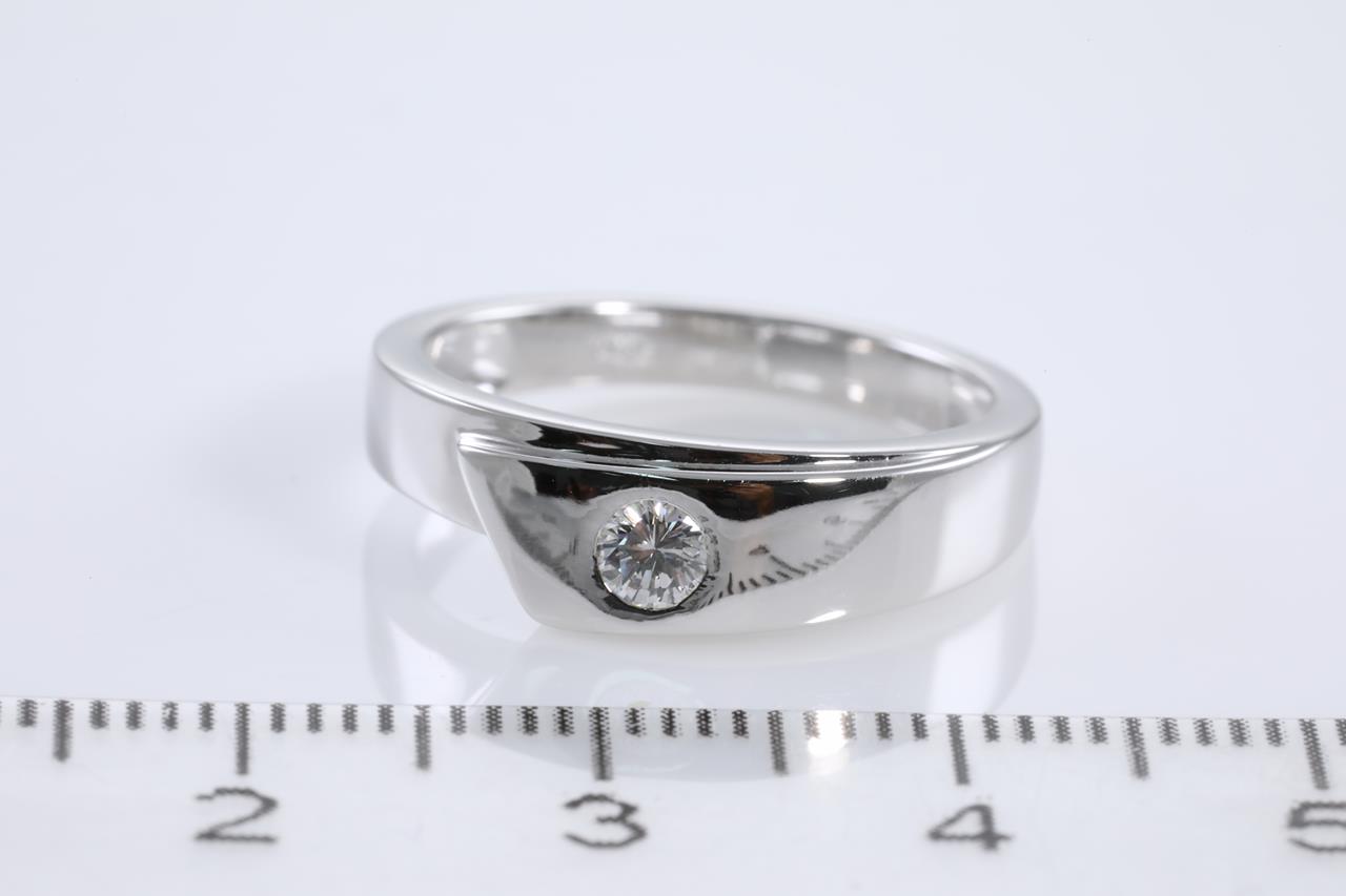 Diamond ring with round Diamond of 0.13ct. 14ct white gold. Ring size L. Weight: 3.6g (Pre-owned)