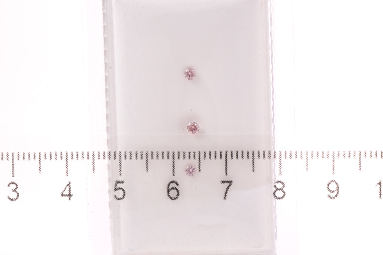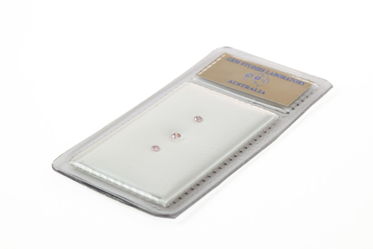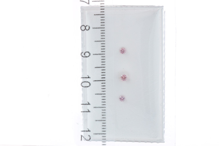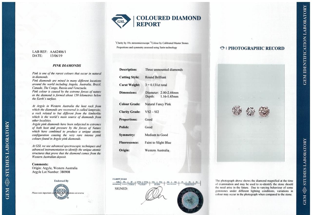 A loose parcel of 3 Argyle round brilliant cut pink Diamonds totalling 0.13cts (with GSL coloured Diamond report graded as natural Fancy Pink VS2-SI2 #AA62406/1). (New)