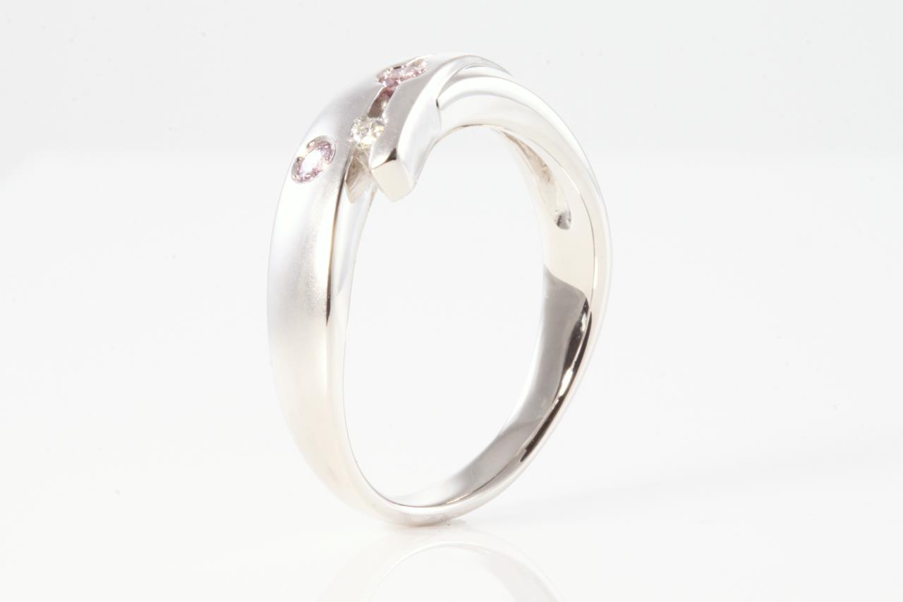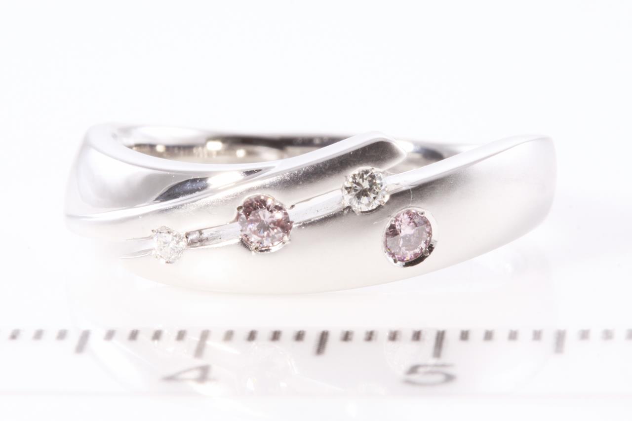 Diamond ring with round pink and white Diamonds totalling 0.14cts. Platinum. Ring size: Q - Note this ring cannot be resized. Weight: 8.2g (Pre-owned)