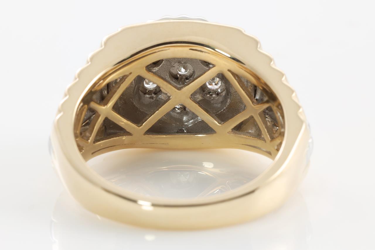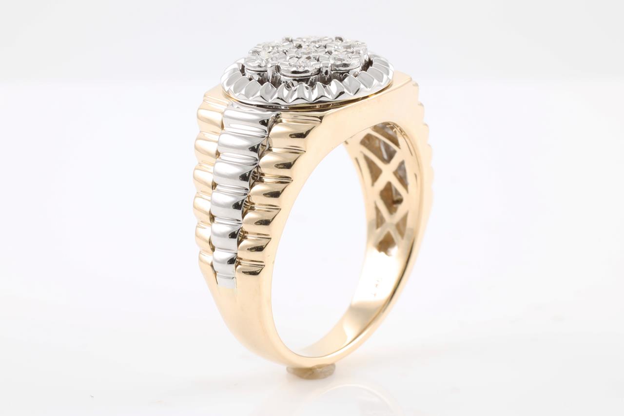 Diamond Mens ring with 7 round brilliant cut Diamonds totalling 0.18cts (Estimated grading: H-I SI). 9ct Yellow gold and White gold. Ring size V. Weight: 10.2g (New)