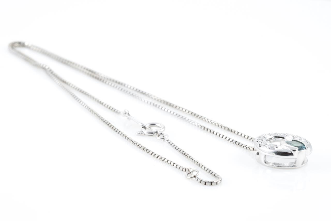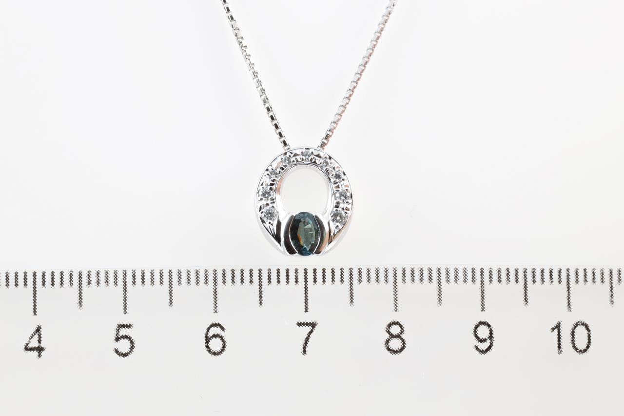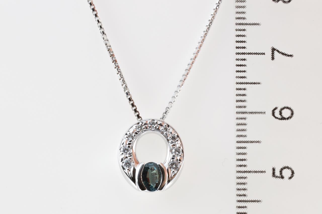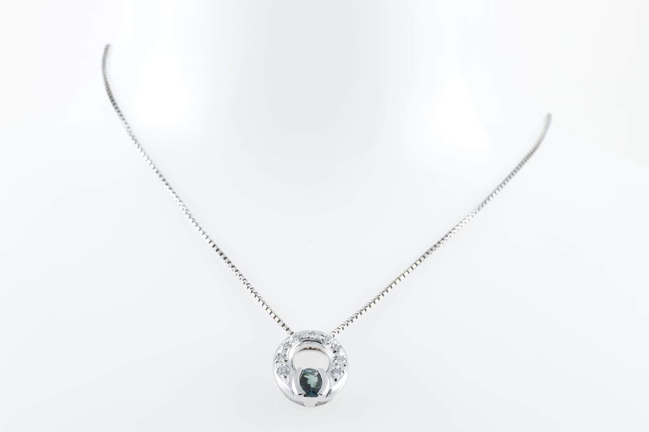 Alexandrite and Diamond pendant with an oval Alexandrite of 0.20ct (colour change from bluish green to to brownish green) and Diamonds totalling 0.11cts. Platinum with adjustable 40cm chain. (Pre-owned)