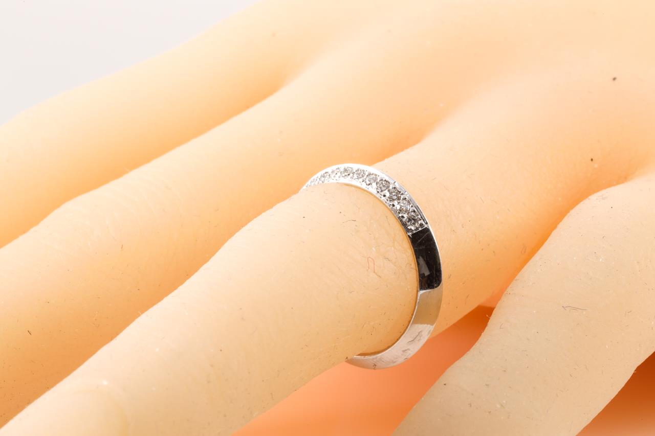 Diamond half knife edge ring with round Diamonds totalling 0.20cts. 9ct white gold. Ring size K1/2. Weight: 1.5g. (Pre-owned)