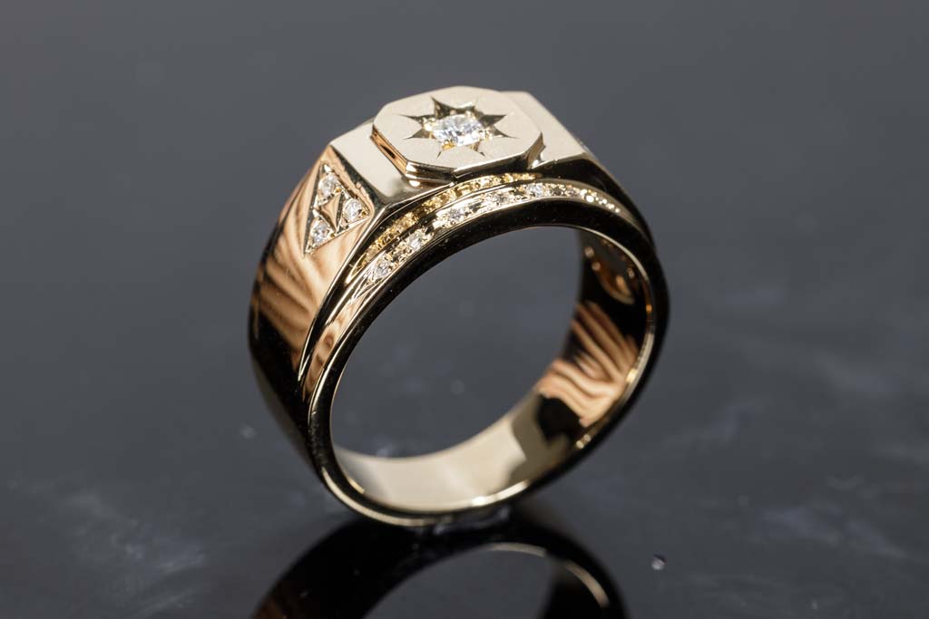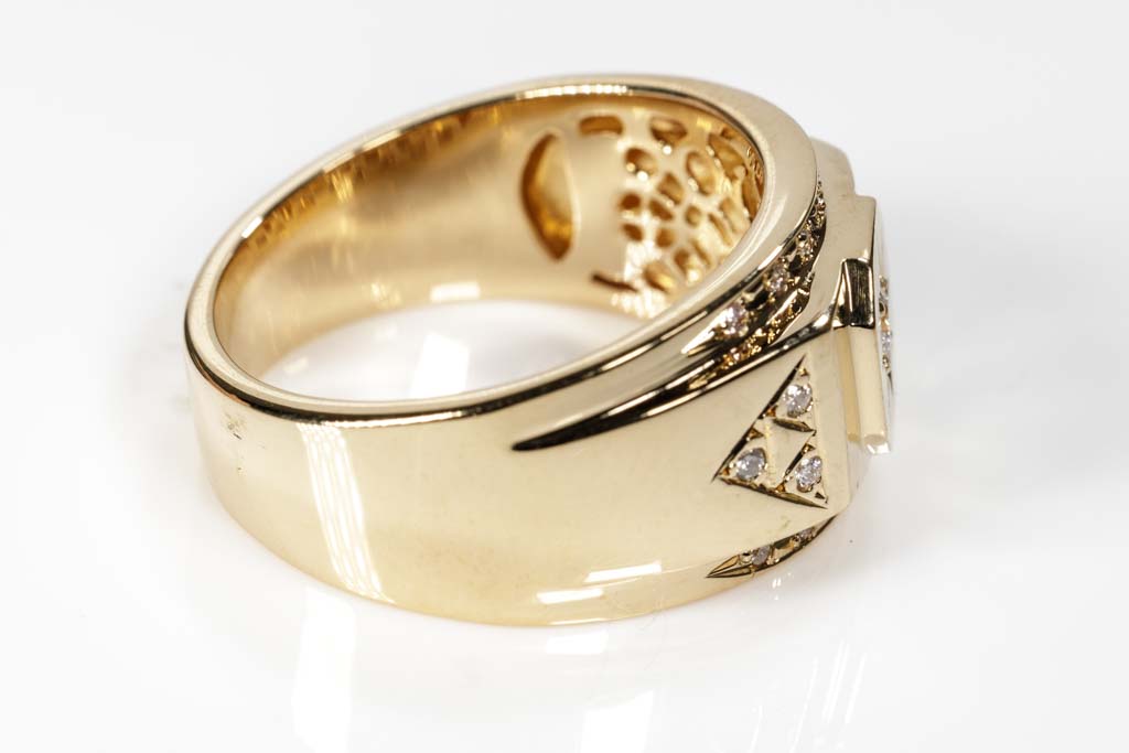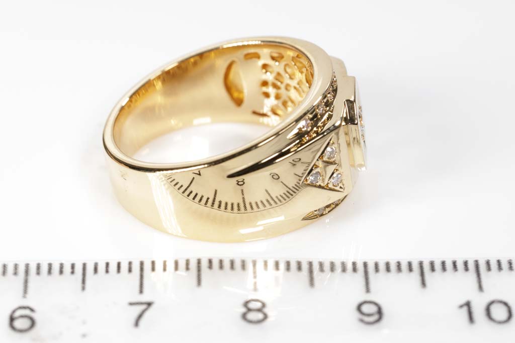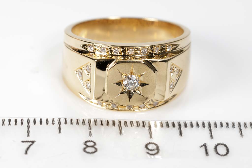 Diamond ring with round Diamonds totalling 0.20cts. 18ct yellow gold. Ring size R. Weight: 10.2g. (Pre-owned)