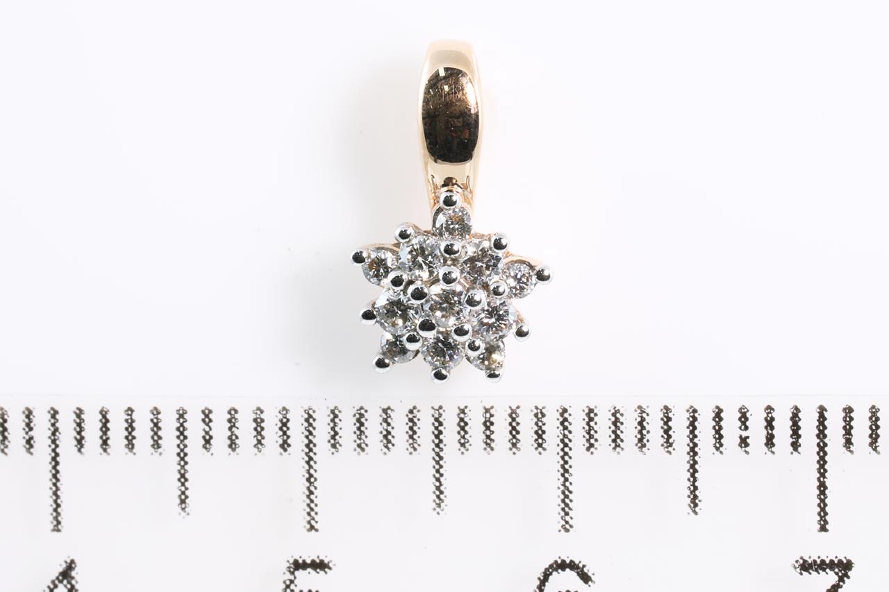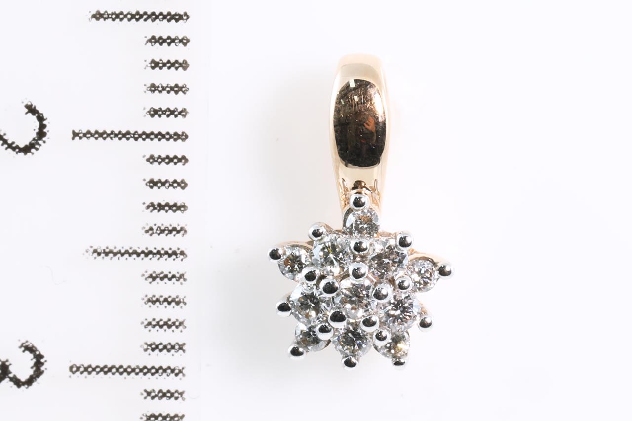 Diamond pendant with round Diamonds totalling 0.20cts (Estimated grading: H SI). 14ct rose gold, no chain provided. Weight: 0.9g (New).