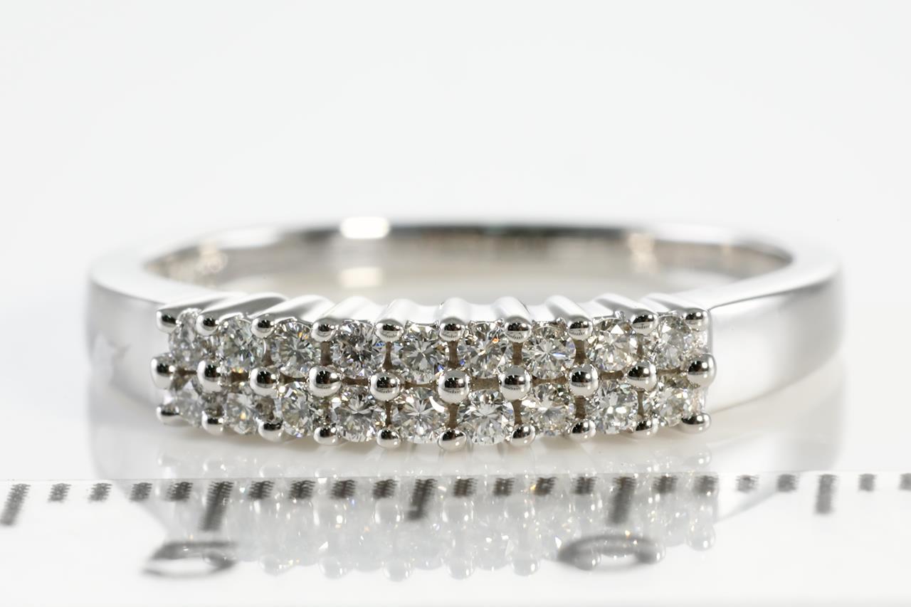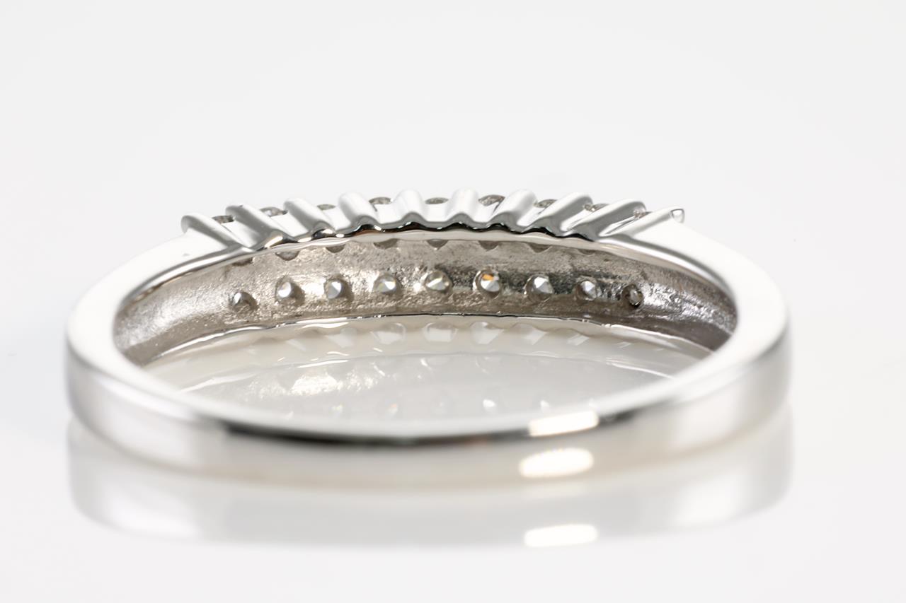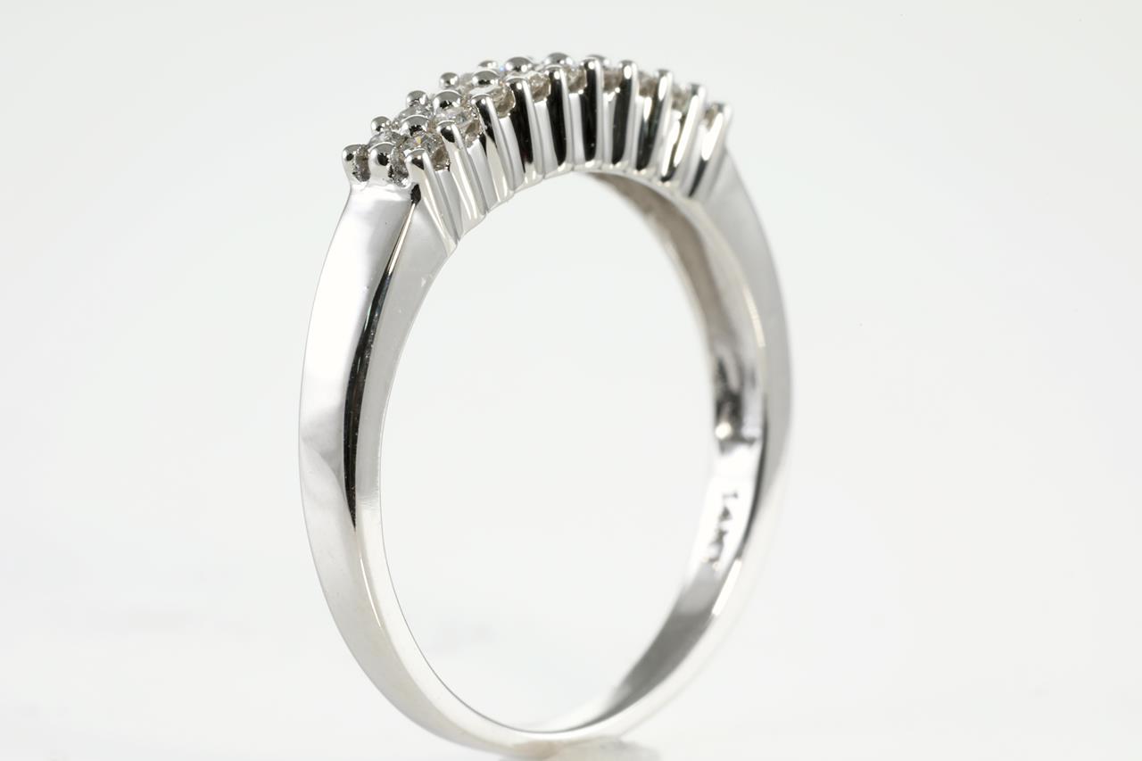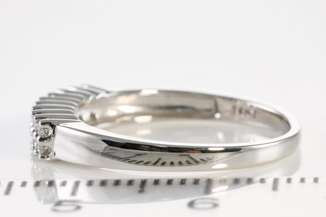 Diamond dress ring with round Diamonds totalling 0.20cts (Estimated grading: H SI). 14ct white gold. Ring size M - Note it is not recommended to resize this ring smaller. Weight: 2.5g (New).