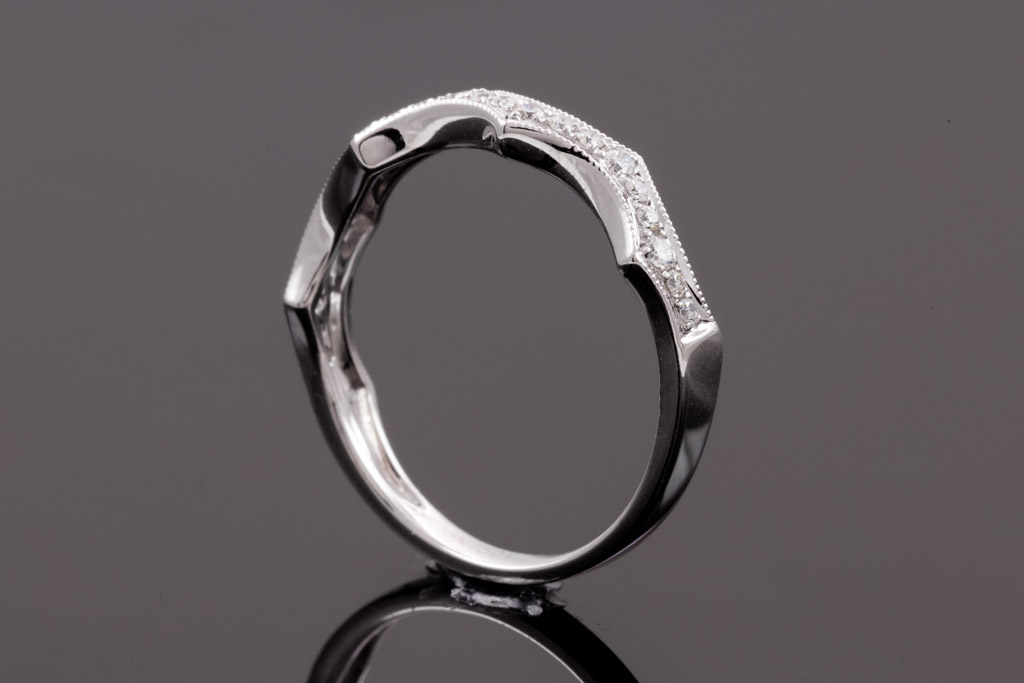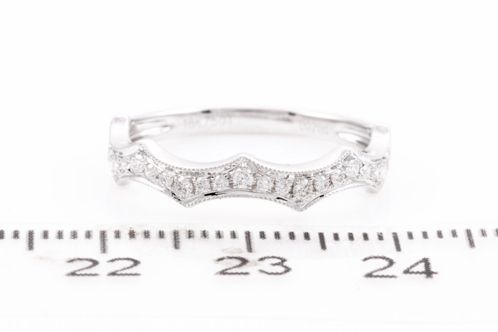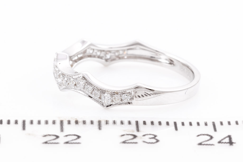 Diamond ring with round Diamonds totalling 0.20cts. 18ct white gold. Ring size M - ring resizing is not recommended. Weight: 2.4g (Pre-owned)