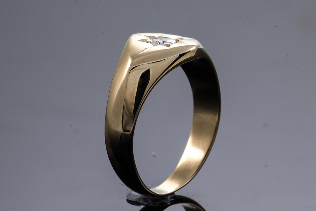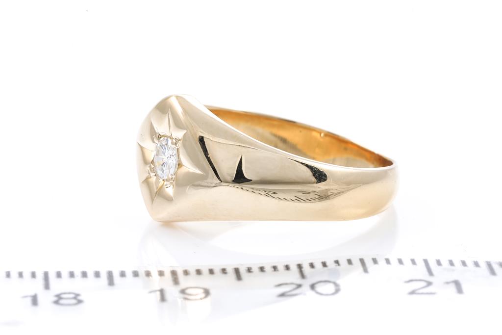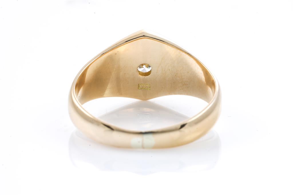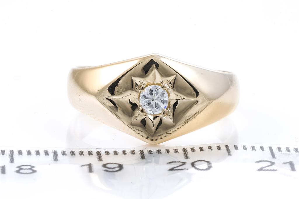Diamond signet ring with a round brilliant cut Diamond of 0.20ct. 18ct yellow gold. Ring size Q. Weight: 7.2g. (Pre-owned)