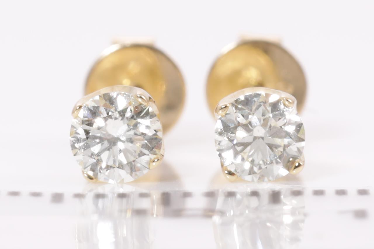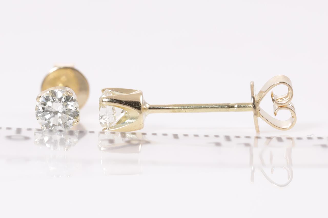Diamond stud earrings with 2 round Diamonds totalling 0.20cts (Estimated grading: I-J VS-SI). 18ct yellow gold. Weight: 1.0g. (New)