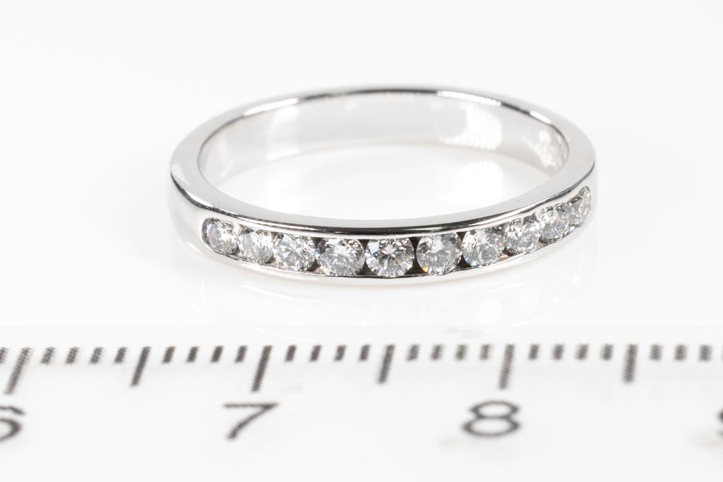 Half Hoop Diamond Eternity Ring with round Diamonds totalling approximately 0.20cts. 18ct white gold. Ring size J. Weight 2.7g. (Pre-owned)